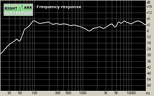 Посмотрим на график АЧХ тестируемых колонок, полученный воспроизведением тестируемой системой логарифмически нарастающего синуса (swept sine).