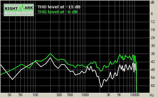 На измеренных спектрограммах уровень искажений (2+3 гармоники) составляет -36 дБ (примерно 2%). В отличие от PRO 2 уровень искажений у старшей модели более приемлемый.