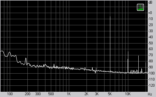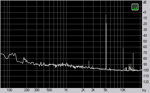 Спектр сигнала, воспроизводимого фронтальной колонкой при подаче частоты 5 кГц