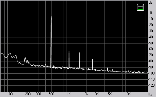 Спектр сигнала, воспроизводимого фронтальной колонкой при подаче частоты 500 Гц