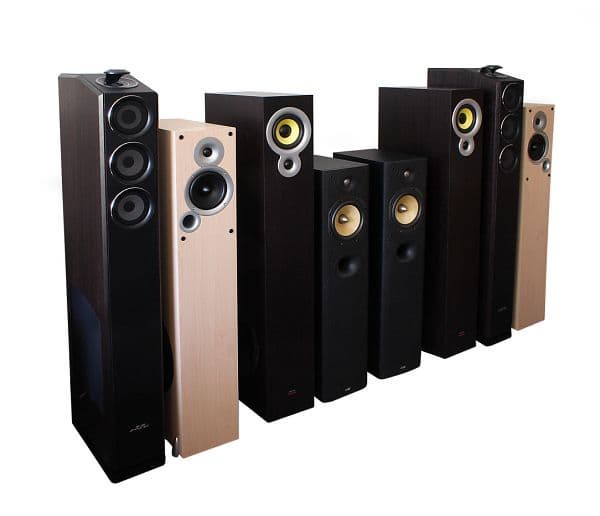 Фронтальные колонки из наборов AVE EC401, Sven HP-840, Microlab V3600, B&W DM 602.5 S3 (слева направо)