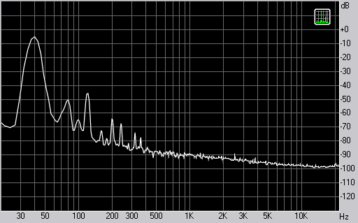 Спектр сигнала, воспроизводимого фронтальной колонкой при подаче частоты 40 Гц