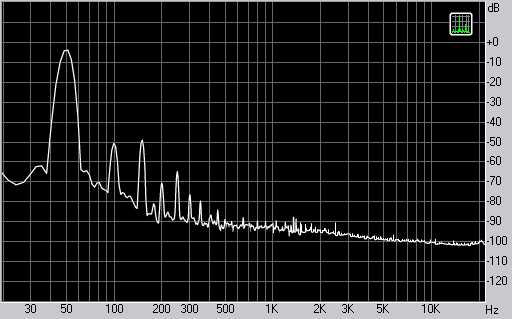 Спектр сигнала, воспроизводимого фронтальной колонкой при подаче частоты 50 Гц