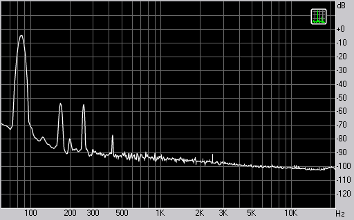 Спектр сигнала, воспроизводимого фронтальной колонкой при подаче частоты 85 Гц