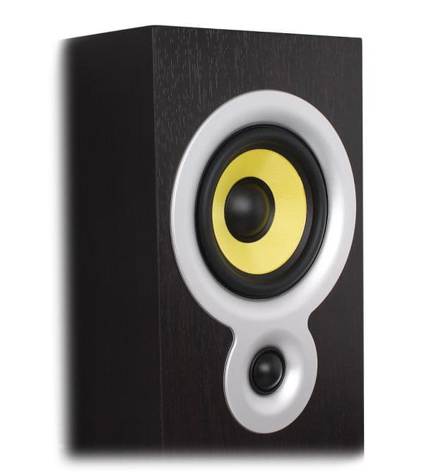 Размеры диффузора среднечастотной головки небольшие и составляют 11 сантиметров, включая подвес. Гибкий подвес изготовлен из резины и тактильно мягкий, однако в акустике подобного класса обычно используются динамики большей чувствительности. Тканевый твиттер с куполом диаметром 27 миллиметров нагружен на рупор. Декоративное обрамление динамиков выполнено в виде пластиковой панели. Защитных сеток на фронтальных колонках не предусмотрено.