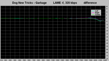 Сравнение АЧХ записи с CD и АЧХ MP3-файла — Линейная шкала частот — Все каналы
