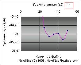 Выводы: при уровне сигнала <= 20 db шумы МР3 становятся меньше шумов квантования riff файла. Ясно прослеживается зависимость шумов МР3 от уровня сигнала. Уровень шумов МР3 лежит ниже порога слышимости.