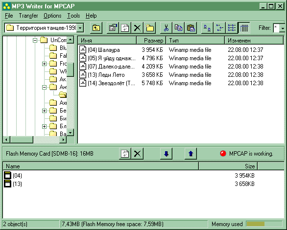 — MP3 Writer для записи файлов и проигрыватель CapSync для их проигрывания