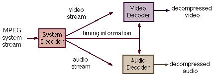 Для синхронизации аудио и видео потоков в системный поток встраивается таймер, работающий с частотой 90 КГц