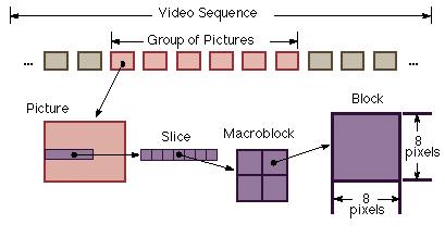Видео поток (Рис. 5) содержит заголовок, затем несколько групп картинок (заголовок и несколько картинок необходимы для того, что бы обеспечить произвольный доступ к картинкам в группе в независимости от их порядка).