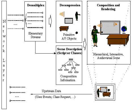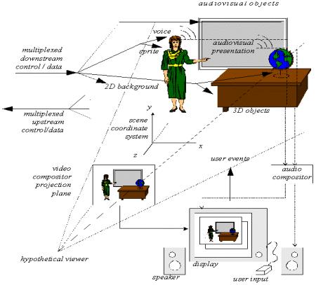- Описывает структуру этих объектов и их взаимосвязи чтобы затем собрать их в видеозвуковую сцену (Рис. 7).