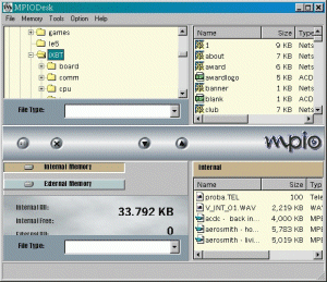 Все операции записи файлов можно выполнять с помощью стандартной функции drag'n'drop. Замечу, что мы написали "файлы" так как MPIO Desk позволяет вам записывать в память плеера любые файлы и извлекать из памяти все файлы, кроме mp3. При попытке извлечь из памяти MPIO файл mp3 на экране появляется сообщение, что это незаконно и файл не будет копироваться. Ну и не надо. Главное, что все остальные файлы можно извлекать из памяти плеера с помощью штатного программного обеспечения, т.е. MPIO можно использовать как транспорт данных. Напомним, что объем встроенной флеш памяти равен 32 Мб. Сегодня это стандартный объем встроенной в портативные mp3 плееры памяти. Но положение вещей меняется и можно утверждать, что осенью этого года уже 64 Мб встроенной памяти будет стандартом. Кстати, плеер Rio 500 имеет как раз 64 Мб встроенной памяти. Впрочем, и для MPIO предусмотрен вариант комплектации 64 Мб встроенной флеш памяти.