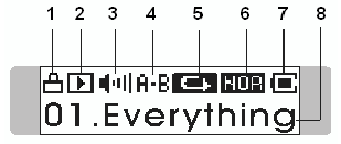 Отображается только название композиции: ни номера, ни времени воспроизведения нам знать не полагается (приведенное на экране число входит в название файла). Информации о формате файла, разумеется, тоже нет, хотя когда тэга нет, его можно понять по расширению (правда, имена файлов отображаются в уже подзабытом формате 8.3). Хорошо, что хотя бы подсветка присутствует. Мне она показалась немного бледной, но кто-то наверняка сочтет ее элегантной и своеобразной.
