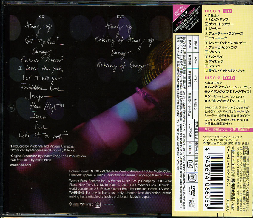 Возможно, именно на это и было рассчитано японское двухдисковое Tour Edition, приуроченное к визиту "королевы танцпола" в Японию. Напомню: выступления в Киото и Токио были последними пунктами в программе тура Мадонны (она отправилась туда из Москвы). Кроме того, в Японии певица снялась в клипе Jump.