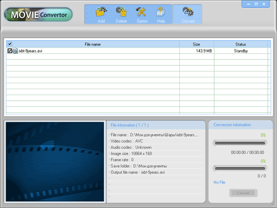Данная часть идентична ранее рассмотренной модели, если говорить о ее поддержке именно плеером. Разве что вид экрана во время управления (перемотки или еще чего-нибудь) изменился, а так все то же, поскольку определяется используемым микроконтроллером. Что радует, а нисколько не огорчает — вполне «настоящий» MPEG4 в виде входного формата это лучше, чем огромное количество непотребных «фирменных» стандартов, отличающихся низким качеством и низкой степенью сжатия. Да и контейнер обычный AVI, то есть использовать для подготовки фильмов (а подгонять их под размер дисплея желательно — зачем зря место в памяти тратить) можно любую программу, которая вам нравится. Под любой ОС, с любой оптимизацией и т.п. Пользователи Windows могут воспользоваться штатной.