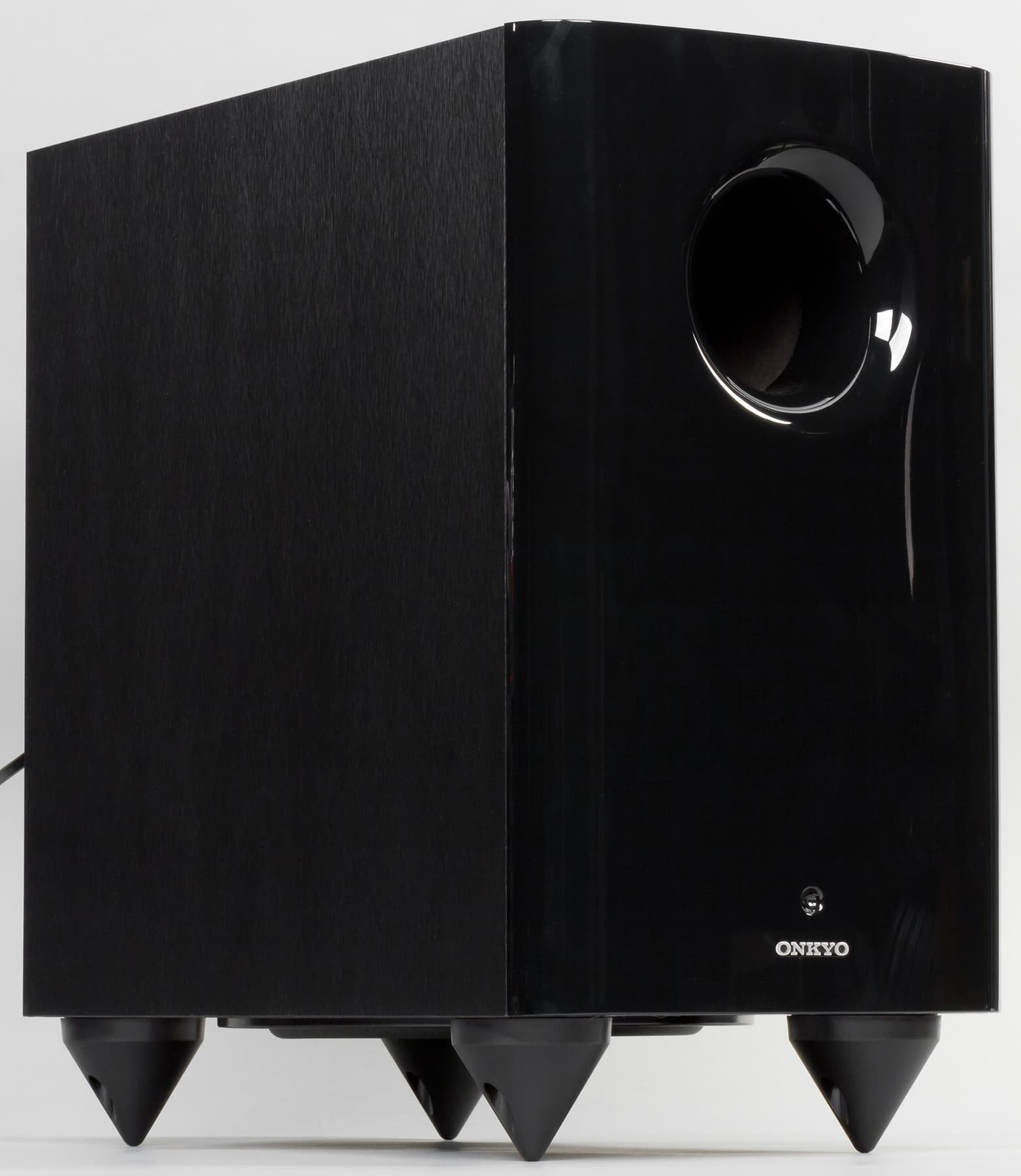 Что поразило при первом же включении — это бас. Он полновесный, с нужным уровнем и глубиной, и никак не ассоциируется с «кинотеатром в коробке». Сабвуфер играет динамиком в пол и из настроек имеет только регулятор уровня, который был установлен приблизительно на 70%, а в дальнейшем эксперименты с громкостью басовой дорожки производились только через настройку уровня с помощью пульта ресивера. Кстати, эти регулировки организованы удобно и не требуют многочисленных переключений между различными меню. Сабвуфер справляется с помещением под 30 м² и почти 3-метровыми потолками. Ход динамика большой, но сабвуфер не «захлебывается», искажения слышны только на очень высоких уровнях громкости. Призвуков крупного порта фазоинвертора, находящегося на передней панели сабвуфера, не слышно.