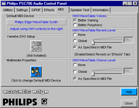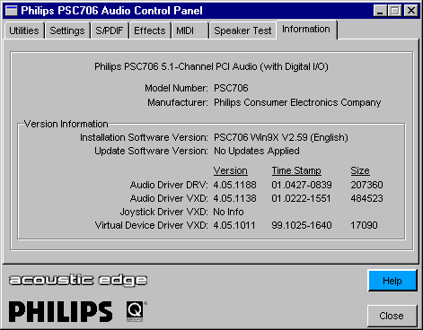 Звуковая карта Acoustic Edge (PSC706) от Philips представляет собой современное и не слишком дорогое многоканальное аудиорешение. Карта оставила у нас хорошее впечатление и рекомендуется широкому кругу пользователей.