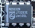 Операционные усилители на выходе всех 3 каналов поражают своими размерами. Это филипсовские операционники NE5532N — довольно крутые по своим характеристикам изделия. Спецификация их относит не иначе как к высококачественным изделиям для применения в профессиональной и измерительной аппаратуре, а также для согласования с наушниками. На 32-омных наушниках Philips HP600 вынести громкость выше 20-процентной отметки в микшере не представляется возможным, в то время как на других картах 90%/90% Master/Wave считается нормой.