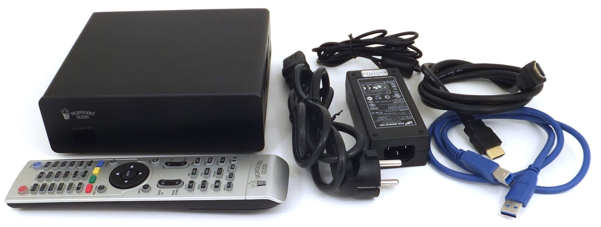 В комплект медиаплеера, поступившего на тестирование, вошли пульт ДУ, внешний сетевой адаптер, кабели USB и HDMI. Этот комплект может отличаться от того, который будет доступен на рынке.