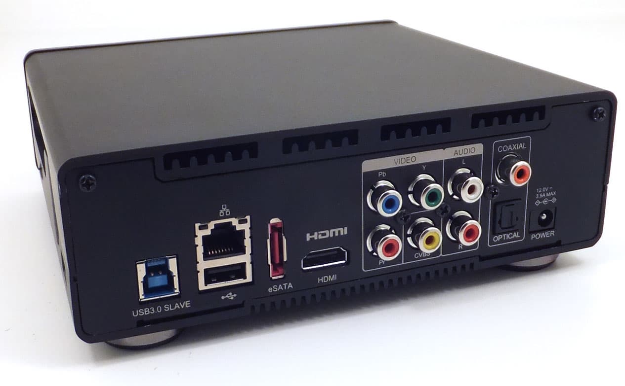 На задней панели расположены порт USB 3.0, разъём локальной сети, порт USB 2.0 для подключения внешних устройств, разъём eSATA для подключения внешних жёстких дисков, HDMI-выход, имеющий версию 1.4, компонентный и композитный видеовыходы со звуком, также коаксиальный и оптический цифровые звуковые выходы и разъём для подключения сетевого адаптера. Правая боковая стенка корпуса имеет выдвижной лоток для установки жёсткого диска, под ним — слот для карты памяти (карта полностью утапливается в корпус и фиксируется в слоте). Ближе к задней стенке находится ещё один порт USB 2.0 для подключения внешних устройств (USB-носители и прочая периферия).