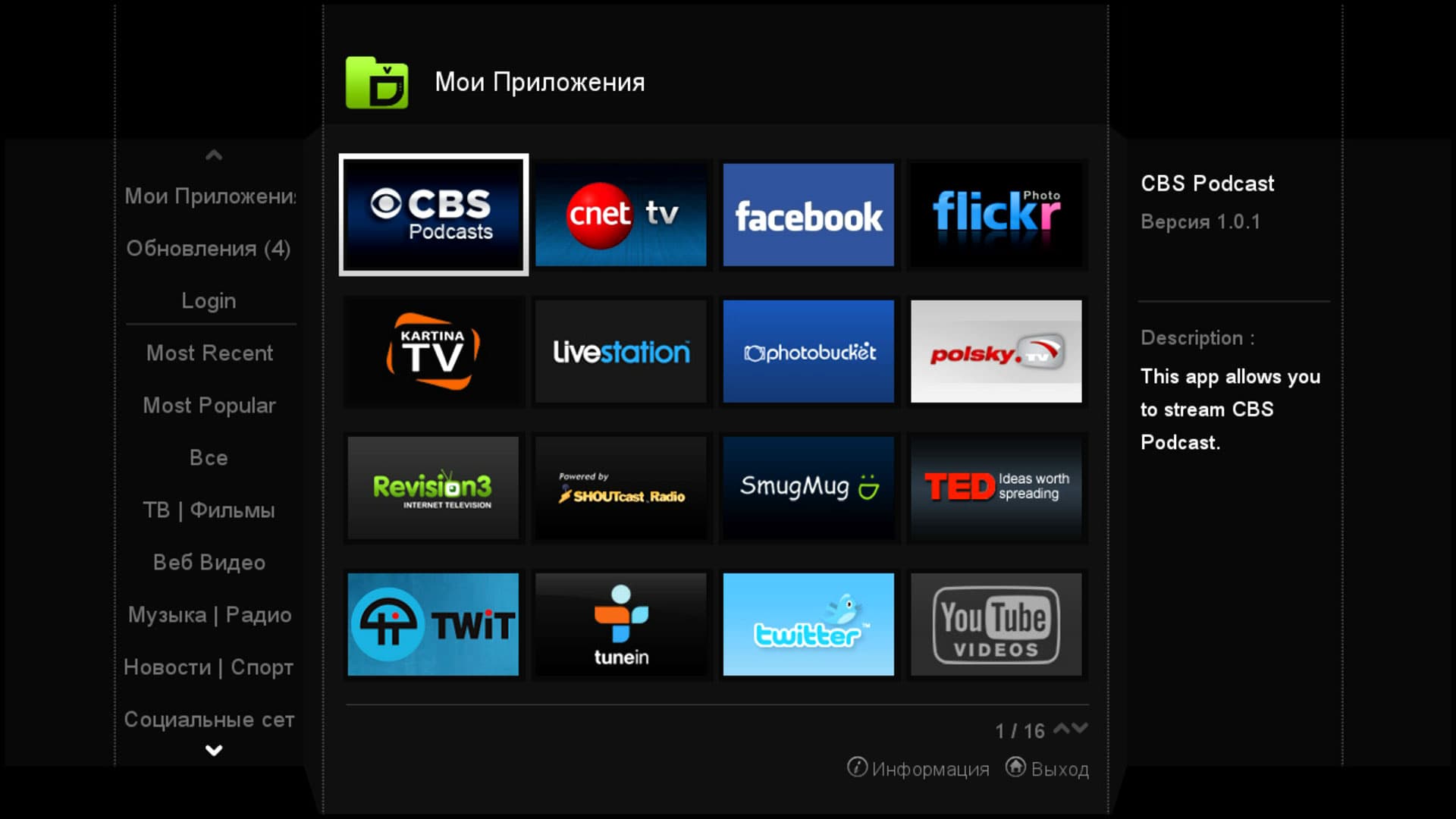 Вот чем хорош набор сервисов Popcorn Hour — все приложения действительно работают! Здесь нет пустышек-заглушек, добавленных в список лишь ради его увеличения (подобная практика часто прослеживается в программном оснащении недорогих плееров).