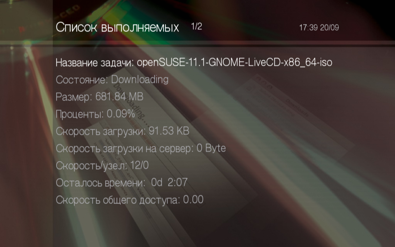 Работа с торрентами вполне удобна, даже если использовать для этого только пульт. Собственно сами .torrent-файлы необходимо предварительно записать на локальный диск, USB-накопитель или на сетевой ресурс. После этого можно запустить их на скачивание не используя компьютер. Список заданий можно просматривать, ставить загрузки на паузу, удалять задания и файлы, проверять детальный статус заданий. В целом все достаточно удобно и функционально.
