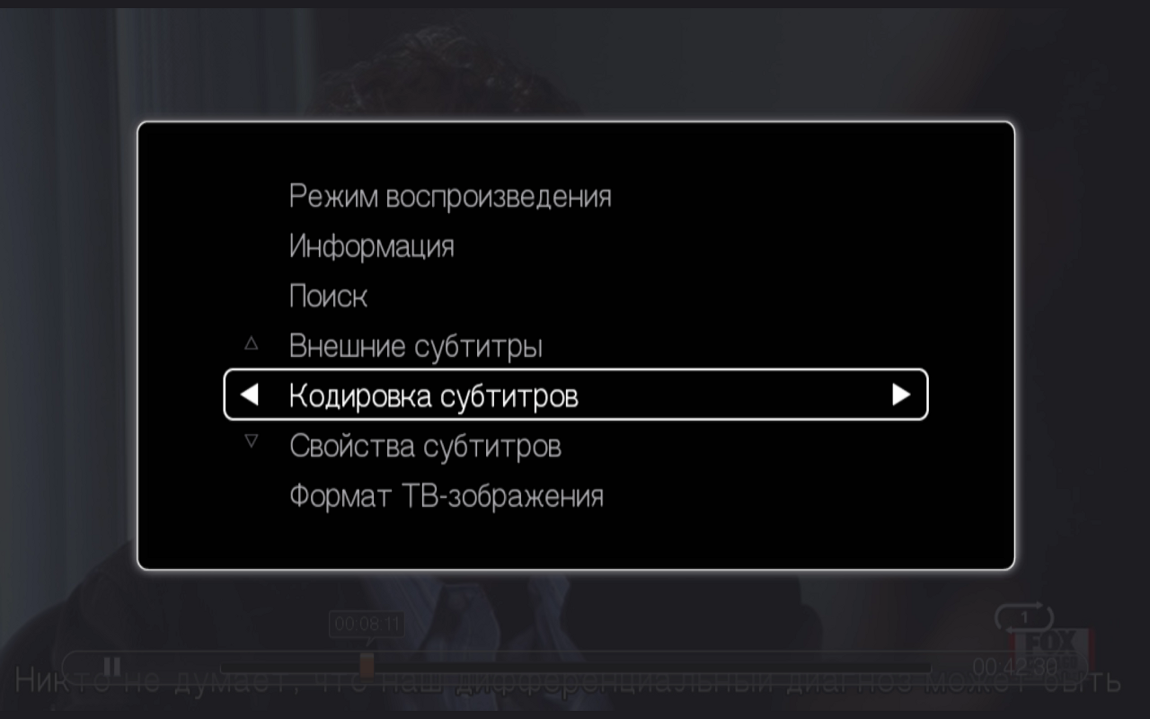 При просмотре DVD Video поддерживается меню, переключение субтитров и звуковых дорожек.