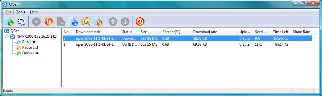 Возможности использованного клиента несколько ограничиваются фирменным интерфейсом управления от QNAP, однако большинство привычных операций доступны. Также для управления задачами кроме Web-интерфейса можно использовать и специальную версию программы QGet (доступна для Windows и Mac). Но большим любителям BitTorrent стоит учитывать, что данная модель все-таки не предназначена для интенсивного использование сервиса. Встроенный процессор имеет ограниченную производительность, поэтому на «второстепенные нужды» остается немного. Это особенно заметно в случае одновременного воспроизведения «тяжелых» файлов, например HD-видео, и использования сетевых функций.