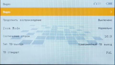 Проигрыватель позволяет выбрать соотношение сторон вручную, то есть можно вдоволь поиграться с соотношением сторон и выбрать подходящее. Есть также режим зуммирования, который позволит при желании обрезать края видео, чтобы дисплей был занят полностью. Но в большинстве случаев достаточно режима «авто», при котором и все пропорции соблюдаются, и экран занят настолько, насколько нужно. Закладки ставить нельзя, но можно включить режим, при котором каждый ролик можно будет посмотреть с того момента, на котором вы его в прошлый раз выключили. Настраивается также режим видеовыхода — компонентный или композитный.