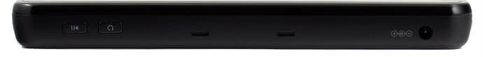 На правом — три кнопки, гнезда для видеокабеля и для наушников.