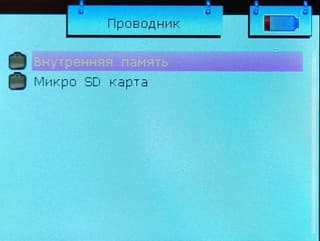 Во время воспроизведения можно нажать кнопку М и перейти в браузер видеофайлов. Как и в случае с аудио, видеофайлы не упорядочиваются в библиотеку, они представлены простым списком файлов и папок. Браузер видеофайлов может обращаться не только к своей «родной» папке, но и ко всей памяти плеера.