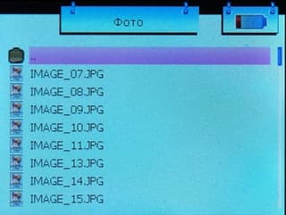 Если нажать кнопку play/pause — запускается слайд-шоу, по завершении которого отображается браузер фото. Он так же, как и браузер видео, содержит посторонние папки.