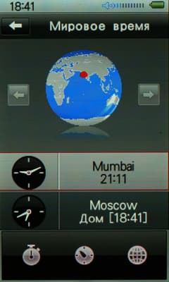 Данный пункт присутствует в главном меню, и это не просто так, ведь под ним скрываются, по сути, три разные функции — «Секундомер», «Будильник и запись» и «Мировое время».