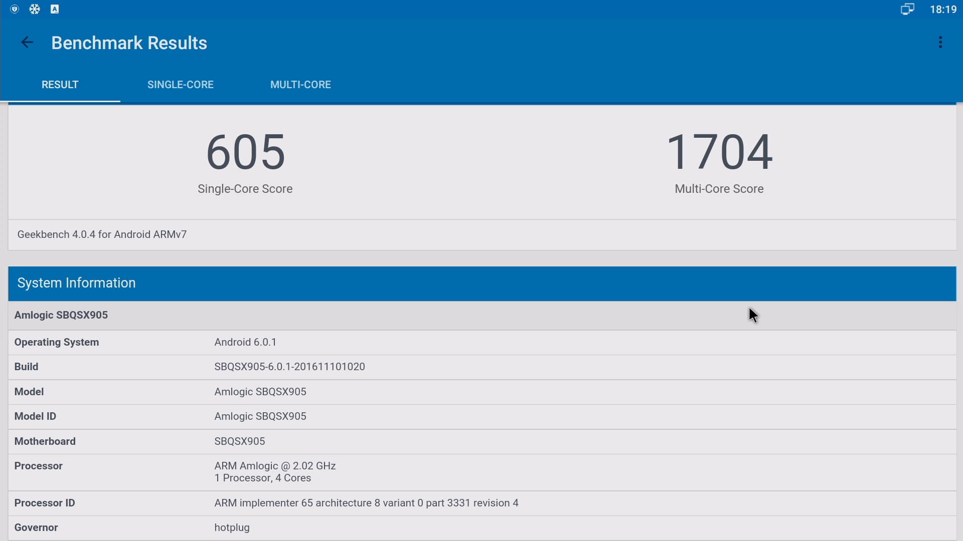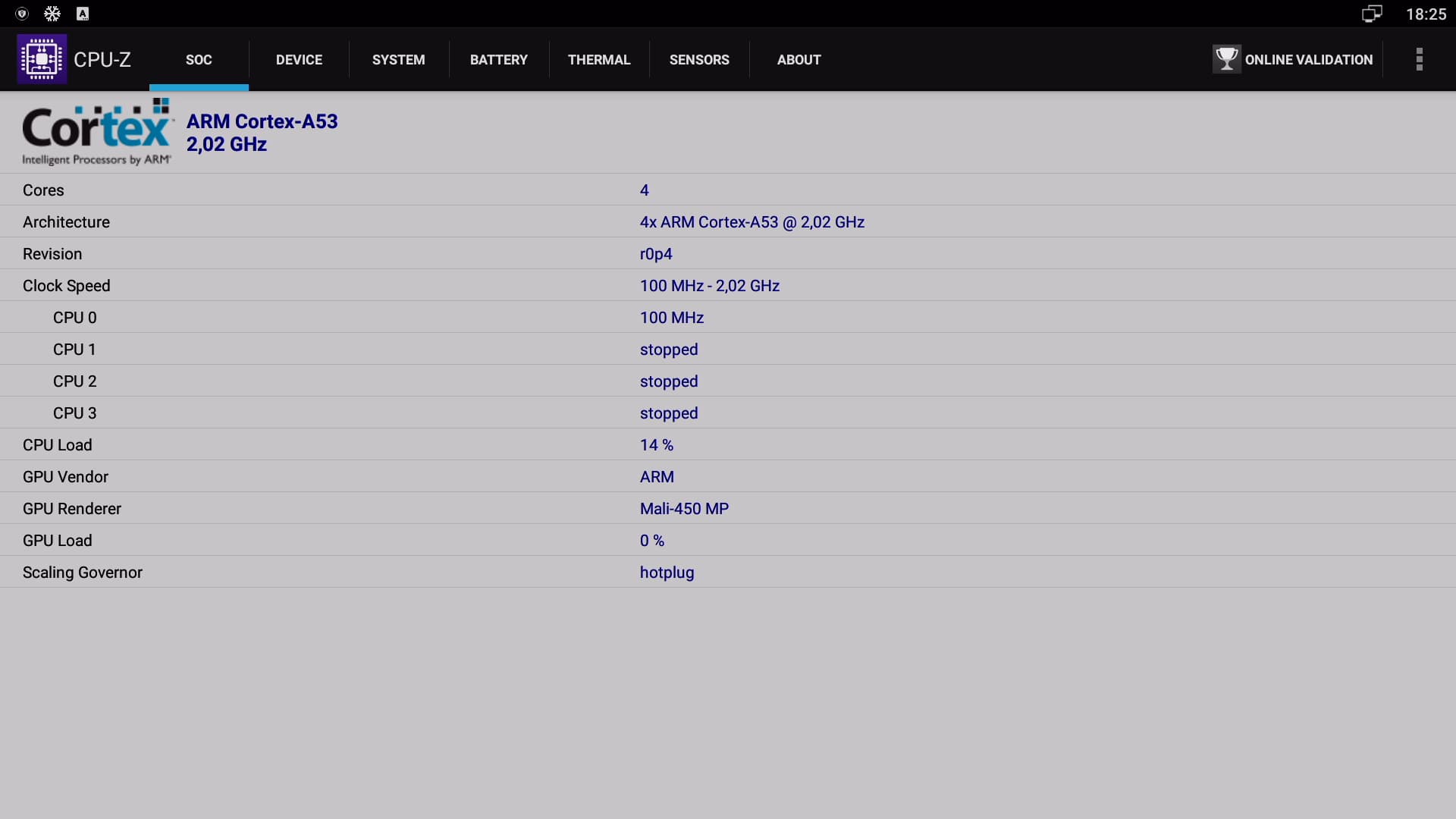 | Центральный процессор | 4 ядра ARM Cortex-A53 2,0 ГГц (Amlogic S905x) |