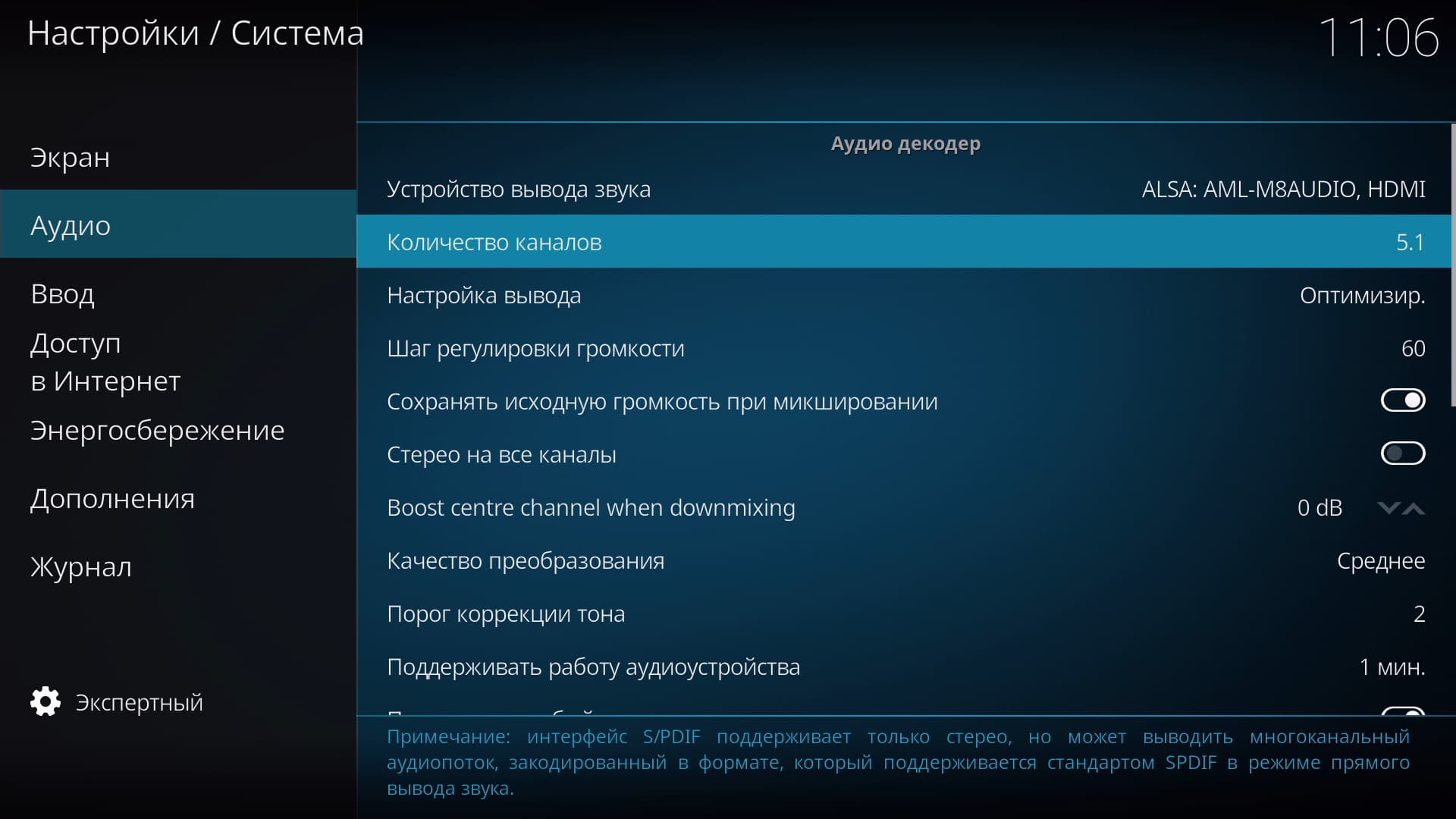 Еще более серьезные инструменты присутствуют в настройках звука. Здесь разрешается не только выбрать источник или количество каналов, но даже включить сквозной вывод (Passthrough) для каждого аудиоформата по отдельности.