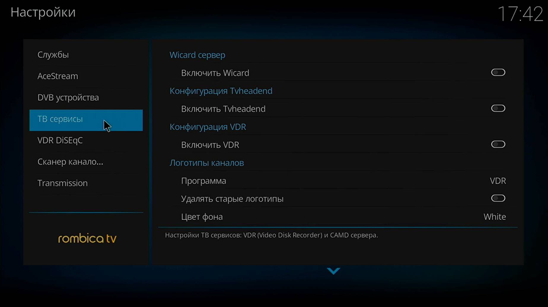 В заключение добавим, что Rombica TV OS не ограничена только воспроизведением контента и эмуляцией игровых консолей. Здесь доступны все те сервисы, которые имеются в Kodi. Включая даже службы, необходимые для подключения IPTV, OTT, Internet TV, Torrent TV, Torrent и внешних USB ТВ-тюнеров (DVB-T2 и DVB-S2).