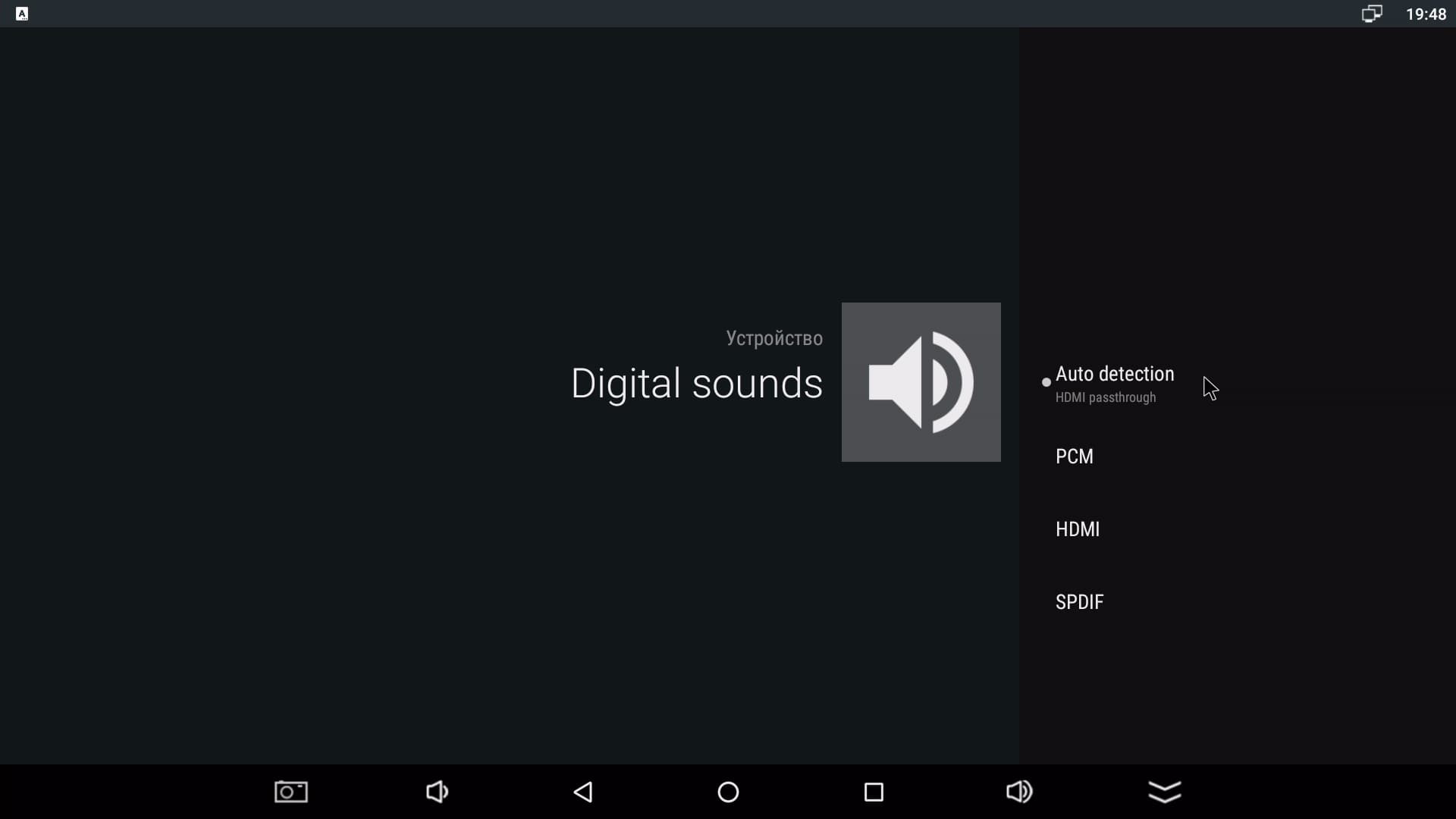 За способ вывода звука на цифровые интерфейсы отвечает отдельный пункт Digital Sounds. Здесь лучшим решением будет оставить активным самый первый пункт Auto Detection. В таком случае плеер всегда будет переключаться в максимально возможный режим. Например, если произведено подключение к аудиоресиверу с возможностью декодирования многоканального звука, то плеер включит опцию сквозной трансляции аудиопотока — HDMI Passthrough.