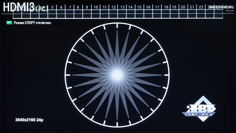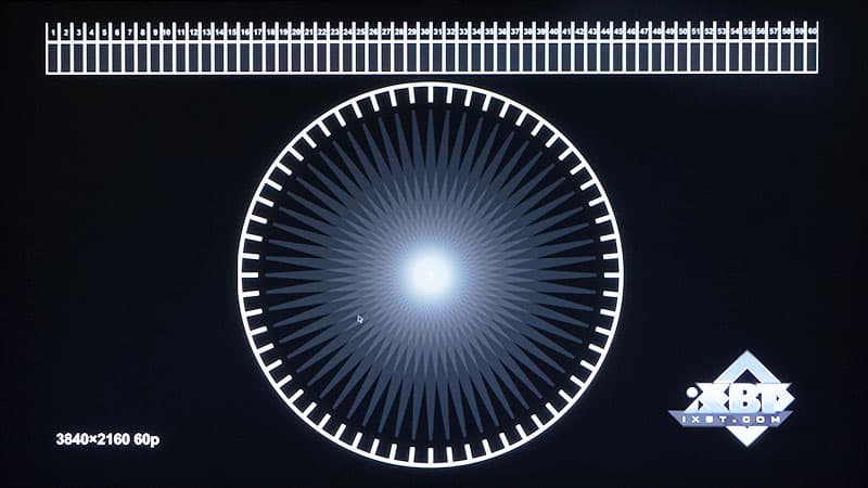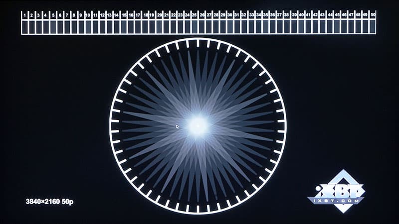 Известно, что при нехватке мощности процессора или в силу других причин многие плееры во время воспроизведения видео могут дублировать или отбрасывать часть кадров. В результате этого картинка на экране постоянно дергается или замирает. Да, не каждый пользователь сумеет глазами увидеть явные признаки дублирования или пропуска кадров. Однако обычный фотоаппарат в состоянии запечатлеть каждый такой случай. И следующий тест — один из нагляднейших, где не задействуется никакая «синтетика», а в результатах отсутствуют безымянные ничего не значащие попугаи. Нам понадобятся специальные файлы, в которых стрелка делает один оборот за секунду, а фотоаппарат нужно перевести в режим приоритета выдержки, выставив время экспозиции, равное одной секунде, и направить на экран телевизора. Если плеер воспроизводит видео без отбрасывания или дублирования, то есть, каждый кадр видеопотока честно декодируется и отправляется на телевизор, то засвеченные отпечатки стрелки, бегущей по кругу, будут иметь на снимке одинаковую яркость, а провалов и пустых участков наблюдаться не будет. Важно: перед экспериментами требуется отключить любую обработку видеосигнала процессором телевизора, переведя используемый HDMI вход в режим ПК.