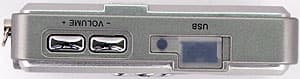 На правом боку обнаруживаются две кнопки для регулирования уровня громкости и USB-разъем (к сожалению, не стандартный mini-B, но имеющий достаточно часто встречающийся вид) для подключения плеера к компьютеру.