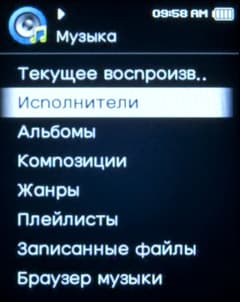 Плеер по своей сути теговый, то есть упорядочивает музыку на основе таких полей тега, как жанр, альбом или исполнитель. Соответственно, в меню «Музыка» мы видим пункты «Исполнитель», «Жанр», «Альбом». Но не всегда теги в файлах прописаны верно, и на этот случай можно воспользоваться браузером файлов. Доступ к нему есть как из меню «Музыка», где отображается только содержимое папки Музыка, так и из общего браузера файлов, представленного в главном меню как отдельная функция.