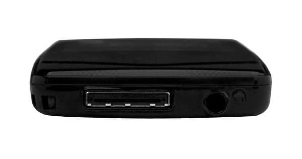 На нижнем же расположено гнездо для, скажем так, не совсем стандартного кабеля, соединяющего плеер с компьютером, а также отверстие для наушников — разумеется, стандартое, 3,5 мм.