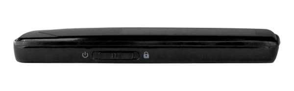 На правом торце расположен ползунок. При движении вверх плеер блокируется, вниз — включается/выключается. Ползунок поначалу довольно жесткий (в нашем случае, по крайней мере), но после легкого смазывания маслом заработал гораздо лучше :) Да и после достаточно активного использования он разрабатывается.