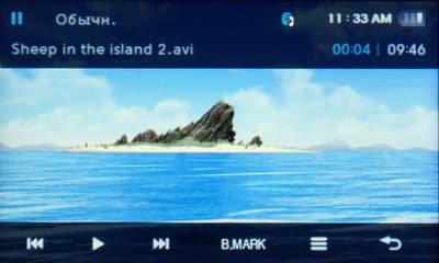 В видеопроигрывателе, в отличие от аудио, можно ставить закладки. Есть функция увеличения и уменьшения скорости воспроизведения в 2,4 и 8 раз. Как и в последних моделях, имеется так называемый мозаичный поиск, когда весь видеофайл разбивается на 16 картинок с кадрами из фильма, по которым теоретически можно быстрее найти нужный момент. Жаль, правда, что эта функция нередко включается тогда, когда она совсем не нужна: для ее активации всего лишь нужно чуть дольше задержать палец на дисплее.