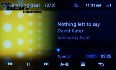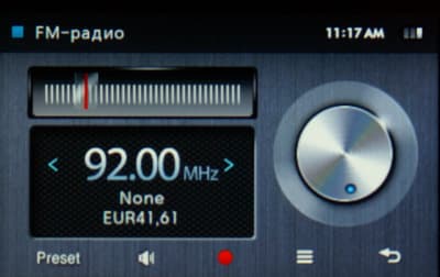 Здесь все стандартно для Samsung: есть RDS, есть запись с радио, можно выбирать регион (есть и японский, где диапазон начинается с 76 МГц). Разумеется, не обошлось и без возможности автоматической и ручной настроек, для записи станций есть 30 ячеек. Интерфейс очень удобен: можно как потихонечку двигаться по шкале, так и воспользоваться кругом, который можно крутить и, таким образом, быстро переместиться в то или иное место шкалы. Да, есть запись с радио, она ведется в MP3 с битрейтом 128 Kбит/с.