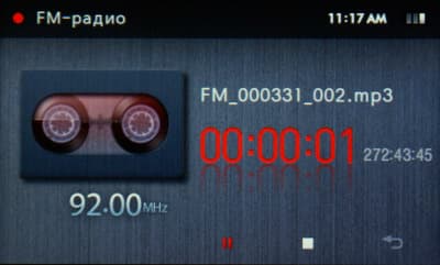 Плеер, посредством встроенного микрофона, можно использовать и как диктофон. Он пишет в формат MP3 с битрейтом 128 Кбит/с, этого вполне достаточно. Запись получается хорошего качества, ничего не трещит, речь разборчива.