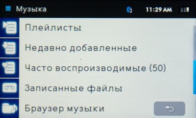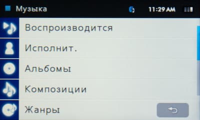 Списки пролистываются пальцем. Можно медленно вести его по экрану и список будет передвигаться вместе с пальцем, а можно быстро, список тогда начнет прокручиваться по инерции. В общем, все прелести сенсорного управления в этом плеере можно почувствовать.