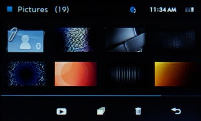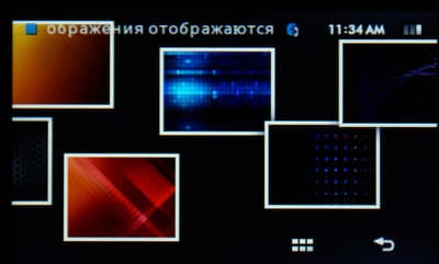 Плеер умеет отображать картинки множества форматов — JPEG, BMP, PNG, GIF, довольны будут все. Просмотрщик стандартный — это мозаика из превьюшек. Картинки можно вращать и зуммировать, а затем по увеличенному изображению перемещаться (благодаря сенсорному дисплею это очень удобно делать). Красиво сделано перелистывание картинок: они движутся единой лентой, когда вы ведете палец от одного края экрана к другому. Слайд-шоу тоже есть.