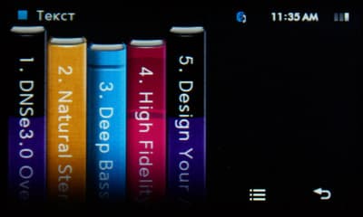 Эквалайзер настраивается через главное меню плеера, он семиполосный. Можно создать две пользовательские настройки, есть также 11 предустановок с фирменными улучшайзерами DNSe .
