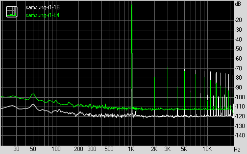 Судя по графикам, количество искажений весьма высокое. За счет них страдает прозрачность звучания, четкость высоких частот. Но звук плеера сравним по качеству с большинством других моделей. Например, мы тестировали по той же методике плеер Samsung R0, у него искажения гораздо меньше, но на слух отличия между этими двумя моделями слабо уловимы.