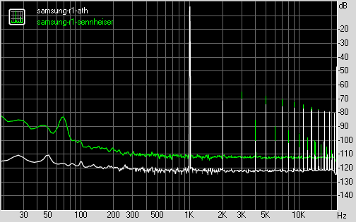 График искажений при нагрузке наушниками ATH CK9 и Sennheiser PX 100: